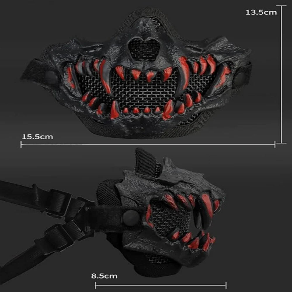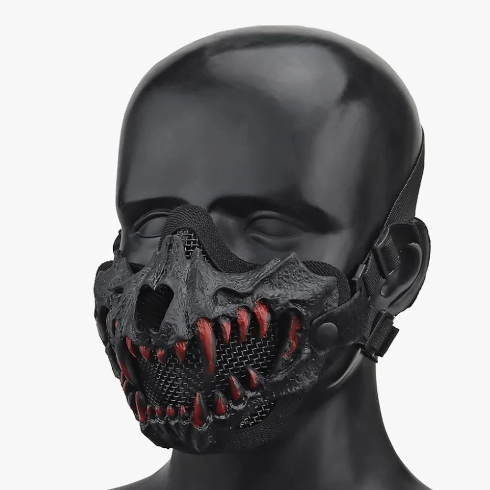 Le demi masque horreur n’est pas qu’un simple accessoire pour Halloween, c’est une véritable armure faciale façon soldat de film d’apocalypse. Entre son design croco terrifiant et sa structure en maille d’acier, il allie protection et frisson. Léger mais robuste, il reste bien en place même quand ça bouge fort. Que ce soit pour dominer une partie d’airsoft ou terrifier tes potes à une soirée déguisée, ce masque fait le job sans broncher 🦴.