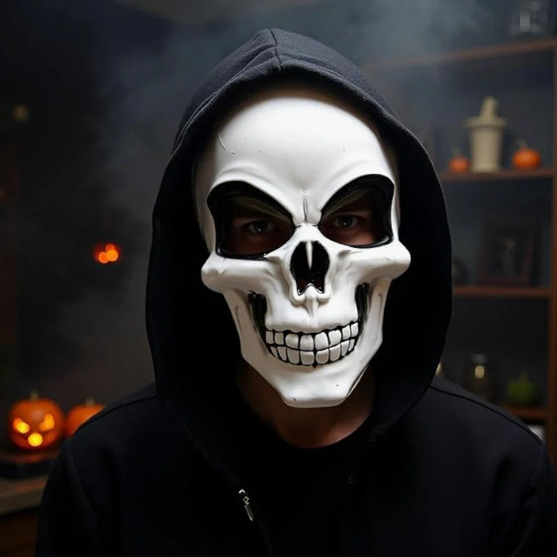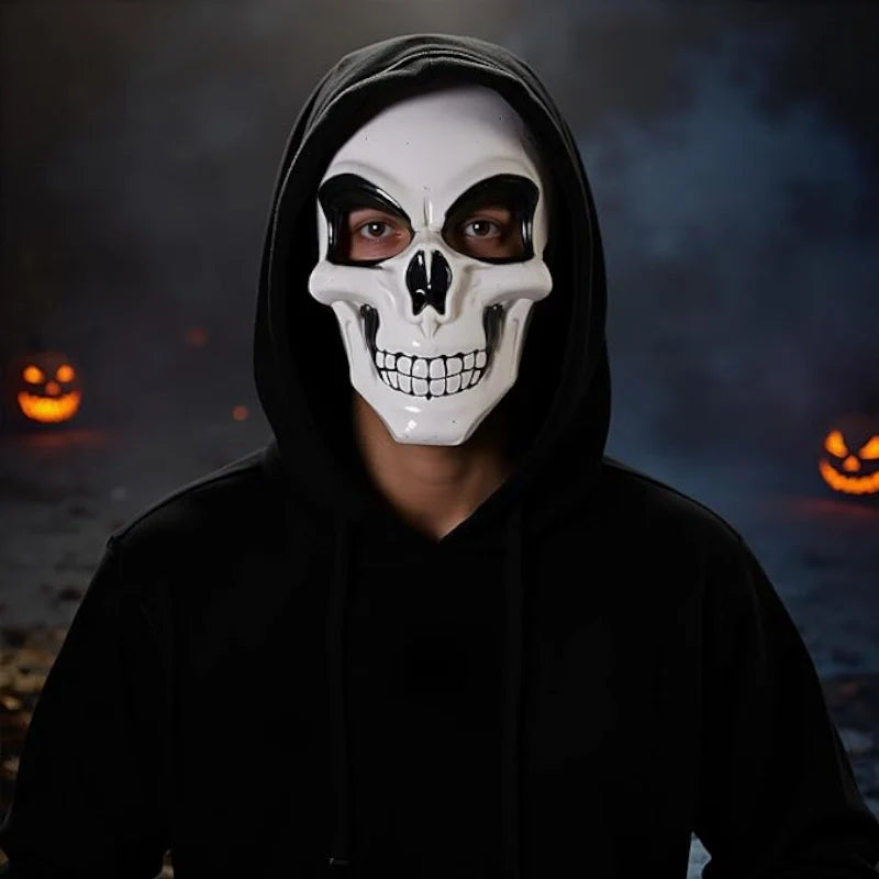 Ce masque horreur blanc est pile ce qu’il te faut pour passer du statut de “simple invité” à “créature sortie de la tombe” en deux secondes chrono. Avec sa tête de mort sinistre et son regard vide, il transforme ton visage en œuvre d’art morbide. Facile à enfiler et léger comme une plume (ou un os), il te suivra toute la nuit, que tu sois en train de danser ou de faire sursauter tout le monde dans le noir 😈. Fabriqué pour les amateurs d’Halloween, de films d’horreur ou de soirées un peu tordues, ce masque donne ce petit frisson qu’on aime tant… celui qui fait hésiter entre rire et courir.